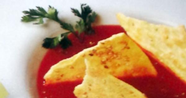 Pinzimonio. Condire con il succo di pomodoro con una cucchiaiata di grani di coriandolo pestati nel mortaio, qualche goccia di tabasco, il succo di mezzo limone, 10 gr di olio, sale e pepe. Servire i finocchi mondati e tagliati a spicchi con le cialde di pane e il succo di pomodoro condito. Decorare a piacere con foglie di coriandolo fresco.