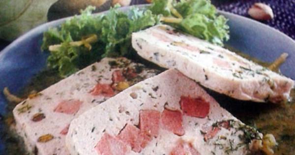 Tagliare il tacchino a dadi e passarlo al mixer con il prezzemolo, l'uovo, il grana, la mollica di pane bagnata nel latte e strizzata e un pizzico di sale, fino ad ottenere un composto omogeneo. Rivestire uno stampo della capacità 1,2 litri con un foglio di carta da forno e distribuire sul fondo un terzo del composto di tacchino. Coprire con meta della mortadella tagliata a listarelle e qualche pistacchio e proseguire gli strati, terminando con il composto di tacchino. Cuocere a bagnomaria in forno già caldo a 180° per 45 minuti. Eliminare il liquido di cottura e lasciare raffreddare. Servire a fette con il condimento di limone mischiato a 5 cucchiai di olio, un pizzico di sale e finocchietto selvatico.
