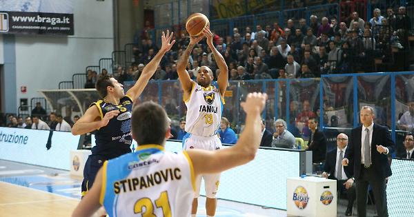 CREMONA - Un finale thrilling per un successo sofferto quanto importante: l'89-87 della Vanoli sulla Sutor Montegranaro vale, al terzo tentativo, l'aggancio al 10° posto di Caserta, ma soprattutto un rassicurante +8 sull'ultimo posto di Biella a dieci giornate dalla fine. “Un passo avanti gigantesco” come l'ha definito Gresta, che si è goduto il quarto successo casalingo della sua gestione nel giorno in cui non aveva Hrvoje Peric, fermato da una distorsione alla caviglia in settimana. Una vittoria maturata con una prova in crescendo: il primo tempo da 49 punti subiti sembrava fare il paio con quello di Avellino, in un'altalena di sorpassi e controsorpassi dove alla Vanoli non era bastato tirare col 46% da 3 e trovare un contributo da sette giocatori su otto della rotazione attorno all'armonia del pick and roll giocato da Vitali e Stipanovic. Soffrendo le scorribande del miglior Di Bella della stagione e la fisicità di Burns, Cremona si è trovata più volte a rincorrere, anche nella ripresa, dove però ha saputo prendere l'inerzia con i dettagli. Cambiando le scelte difensive e migliorando per concentrazione, in una partita ad alto voltaggio offensivo la Vanoli è riuscita a tenere la Sutor al 38% dal campo nel 3° periodo, il primo chiuso avanti (66-64 al 30'), passando inoltre dalle 9 palle perse dei primi 20' alle sole 3 della ripresa. Non che fosse bastato, perché nell'ultimo quarto ci sono state altre 6 situazioni di sorpasso: l'ultimo, quello buono, è quello operato, dopo due triple sutorine che parevano una mazzata, da Luca Vitali con un gioco da 3 punti fondamentale a 44” dalla fine, valso l'86-85 poi premiato, sul possesso successivo, dal 'freccione' che, sul tiro dello stesso Vitali incastratosi sul ferro, ha dato a Cremona la rimessa su cui Jackson ha ricamato l'88-85. Detto di un Luca Vitali sempre più leader, 16 punti e 6 assist per lui, tra i singoli le note positive si chiamano Stipanovic, 16 punti e 13 rimbalzi con 30 di valutazione ed un 8/9 dal campo che porta la sua percentuale delle ultime 5 gare vicina all'80%, e la continuità al tiro di Brian Chase, 10/19 da 3 nelle ultime tre uscite in cui ha sempre più preso il posto di Johnson. Positivo anche Lance Harris, non irreprensibile in difesa ma importante nei momenti delicati tra 2°e 3° quarto; per lui 20 punti, 6 rimbalzi e 6 falli subiti.