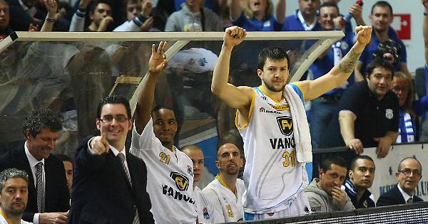 Paolo Lepore gioisce sulla panchina della Vanoli