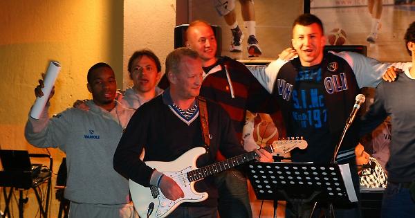 Musica, discorsi e momenti davvero esilaranti nel mini palco allestito. Momento imperdibile quello dei Pooh versione cremonese, ovvero i ‘Pooi’. Nell’ordine il fisio Augusto Bagnoli prima voce; coach Gigio Gresta, voce, piano e chitarra; Mario Paolo Scarini chitarra, Pietro Moroni batteria; Antonio Vallari dei City Kaos basso. Una performance davvero esilarante e anche di ottimo livello tecnico. Proprio in serata abbiamo scoperto che il gruppo non era neppure troppo improvvisato, visto che coach Gigio Gresta, musicista vero, da settimane stava organizzando le prove. A fine serata saluti per tutti e un pizzico ci commozione pensando al futuro.