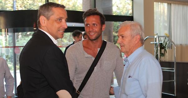 Gigi Simoni si intrattiene con un gruppo di tifosi - si discute di Simone Sales, giocatore che la società ha scelto di trattenere nonostante tra lui e la tifoseria non corra buon sangue - e commenta con soddisfazione il mercato grigiorosso: "Abbiamo un buon parco giocatori, dobbiamo creare un gruppo di amici che lotta per vincere, è una squadra fatta per il salto di categoria".