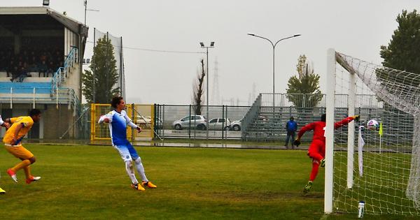 Il colpo di testa di Bardelloni che vale l'1-0 con il Porto Tolle