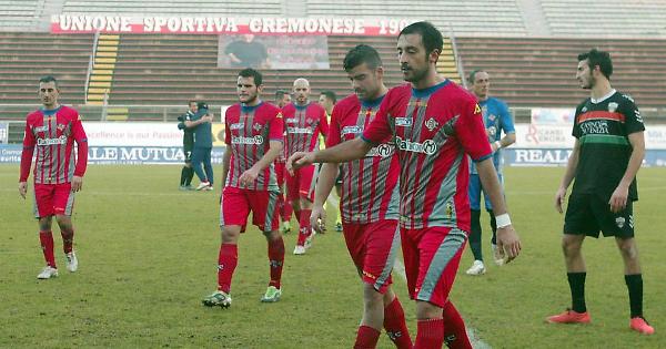 Volti scuri dei giocatori della Cremonese dopo il ko con il Venezia