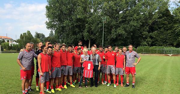 CREMONA - Gaia Azzini di Pieve San Giacomo ha sottoscritto il millesimo abbinamento per seguire il campionato della Cremonese e ha ricevuto dal presidente grigiorosso Gigi Simoni una maglia autografata dallo stesso. La consegna è avvenuta prima dell'allenamentodella squadra al campo Soldi.