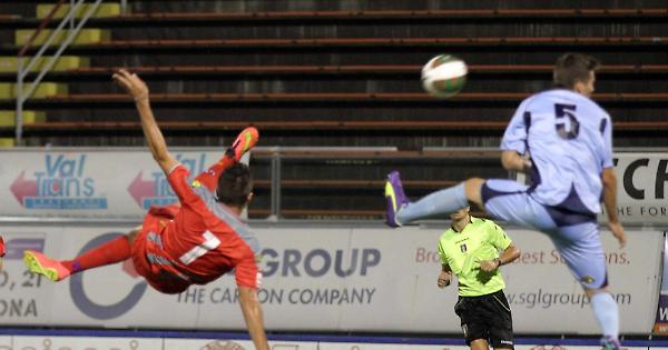 La sforbiciata alta di M. Marchi contro l'Albinoleffe (Foto: Ib frame)