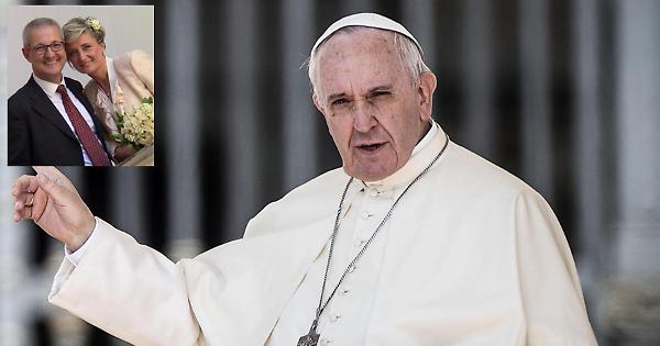 Papa Bergoglio e nel riquadro gli sposi