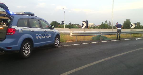 Il luopo dell'incidente a Spino d'Adda e il corpo della vittima pietosamente coperto sotto il guard rail