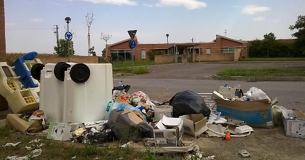 VIADANA (Cogozzo-Cicognara) - La fotografia scattata nel parcheggio della scuola materna Don Mazzi di Cogozzo-Cicognara è talmente eloquente che non ci sarebbe bisogno di altre parole se non un titolo per definirla: ‘Discarica a cielo aperto’.