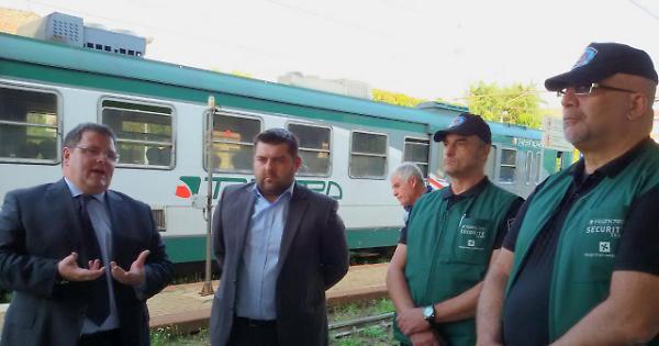 Crema - Al via l’operazione sicurezza alla stazione ferroviaria cittadina. L’iniziativa porta la firma di Trenord e Regione Lombardia: da venerdì 11 settembre è stato istituito un presidio fisso di due vigilantes pagati dall’ente milanese nell’ambito dell’investimento da 7 milioni di euro che ha portato 150 guardie private nelle stazioni e sui treni lombardi, dopo i ripetuti episodi di criminalità, tra cui quello di Villapizzone a Milano, dove a giugno un capotreno era stato aggredito con un machete tanto da perdere l’uso di un braccio. Per annunciare l’iniziativa l’assessore regionale alle Infrastrutture Alessandro Sorte è tornato ieri a Crema a tre settimane dal suo intervento alla festa centrale del Pd. Con lui il consigliere regionale dell’Ncd Carlo Malvezzi il sindaco di Offanengo Gianni Rossoni e il capogruppo di Forza Italia in Comune Simone Beretta. «Ci siamo mossi dopo i noti fatti di cronaca e ai 70 vigilantes già presenti ne abbiamo aggiunti altri 150, di cui 90 sono in servizio — ha spiegato Sorte —: gli altri arriveranno a breve. Dal governo, alla nostra richiesta di potenziare le forze dell’ordine sui treni e nelle stazioni, hanno fatto orecchie da mercante, dunque abbiamo agito da soli».