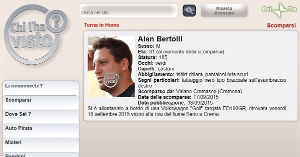 CREMA - La riunione operativa si terrà domani sera, in modo da elaborare un piano di azione. Un gruppo di sub ha deciso di organizzare un’uscita sul fiume Serio per contribuire volontariamente alla ricerca del ragazzo. Li ha coinvolti un ragazzo appassionato di immersioni e amico di Alan Bertolli, il 31enne vaianese scomparso da casa da quasi due settimane e i cui genitori, Silvana e Angelo, si erano tolti la vita nell’ultimo anno. «E’ gente preparata e avvezza ad immersioni in acque lacustri, dunque con scarsa visibilità, come possono essere quelle del Serio — spiega lo zio Claudio Bordogna, in contatto con i sommozzatori —: non servono autorizzazioni o permessi particolari per scandagliare il fondale del corso d’acqua, semplicemente questi ragazzi hanno deciso, e li ringraziamo di cuore, di darci una mano». Nel frattempo la visione delle immagini delle telecamere a circuito chiuso della stazione della metropolitana di San Donato Milanese non hanno ancora portato a risultati: era arrivata nei giorni scorsi la segnalazione di una ragazza, sicura di aver incontrato Bertolli in metrò. Della scomparsa di Alan si occuperà anche la trasmissione televisiva ‘Chi l’ha visto?’ che dedicherà un servizio al caso del 31enne vaianese.