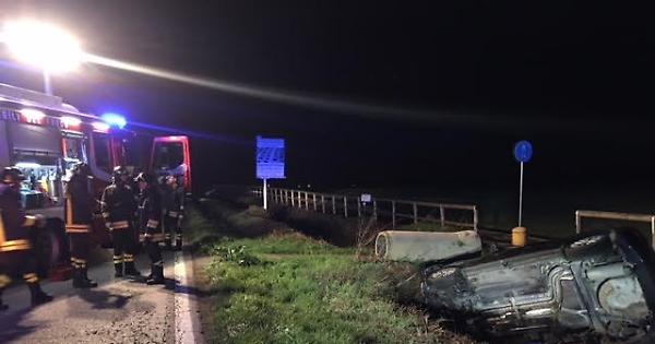 L'auto ribaltata nel campo attiguo la provinciale Serenissima