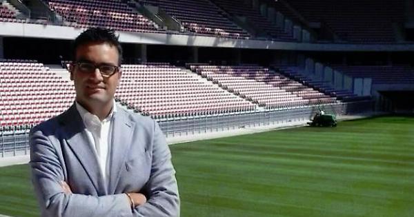 Enzo Senese all’intero dello stadio di Nizza alla cui facciata ha lavorato con un team di esperti
