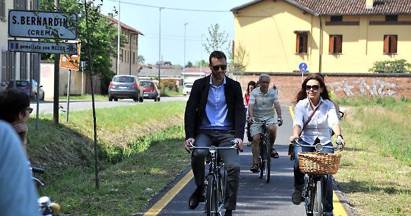L'inaugurazione nel 2015 della ciclabile di via Brescia