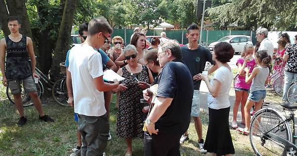 Gli amici di Alessia mentre raccolgono le firme
