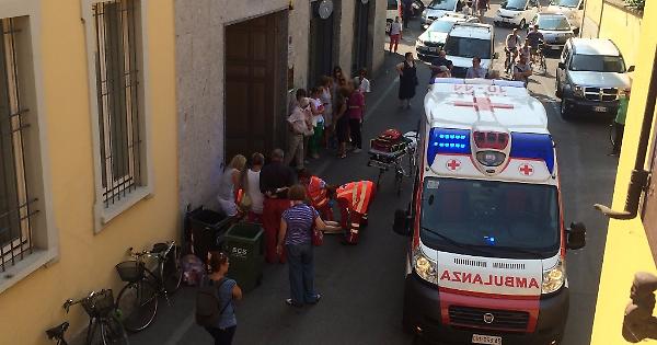 I soccorsi alla donna investita da un ciclista per un probabile scippo