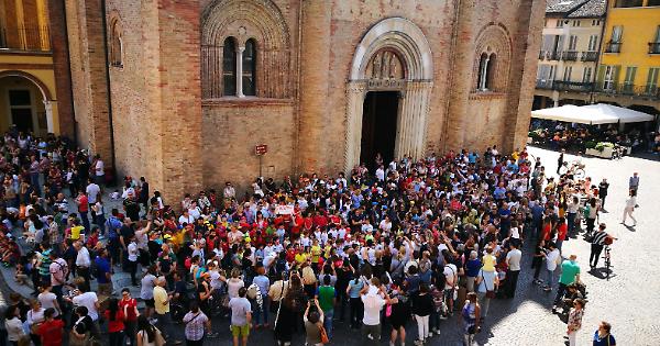 CREMA - Buffi personaggi sui trampoli a guidare le cinque sezioni della grande (e doppia) festa di piazza del Fatf. Sabato 27 maggio, Il Franco Agostino Teatro Festival ha portato in città 1.400 bambini da tutte le scuole primarie di Crema e del Cremasco. Lo spettacolo 'Equilibrio', per la regia di Nicola Cazzalini, ha conquistato cinque cortili: agli ex-Stalloni, alla Manziana di via Goldaniga, al campo di Marte, a palazzo Clavelli e nello spazio verde dell'ex-casa di riposo di via Zurla. In scena, 30 classi il mattino, 30 nel pomeriggio, per raccontare con varie tecniche la storia 'Zic e Zac' e l'albero sospeso. Tra danza, canto, scenografia e tanto altro, i protagonisti riusciranno a stare in equilibrio tra ciò che è giusto e sbagliato. Al termine delle due tranche di rappresentazione, tutti i gruppi hanno dato vita al corteo (il secondo con le bande cremasche) verso la piazza Duomo. Dove, tra musica e colori, si è conclusa la festa con l'inno del Fatf.