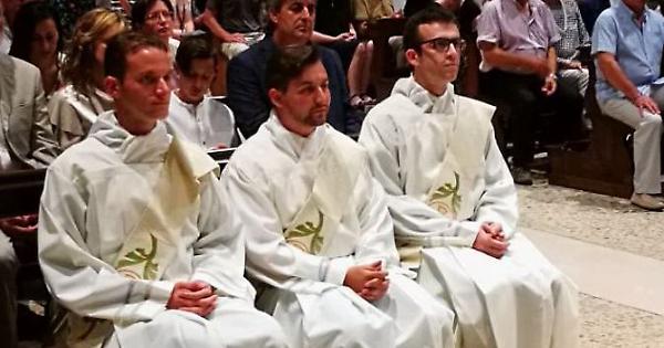 CREMA - Una cattedrale gremita ha assistito ieri sera (sabato 17 giugno) all'ordinazione di don Nicholas Sangiovanni, don Francesco Cristiani e don Giovanni Viviani. Tre nuovi sacerdoti cremaschi per la diocesi: i primi dopo 30 anni a ricevere insieme il diaconato. Il vescovo di Crema monsignor Daniele Gianotti li ha ordinati, concelebrando con tutto il clero la cerimonia. Don Nicholas (Scannabue), don Francesco (Sergnano) e don Giovanni (Bagnolo Cremasco) oggi ( domenica 18 giugno) presiederanno la loro prima messa nelle rispettive parrocchie d'origine.