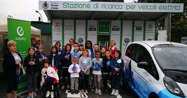 RIVOLTA D'ADDA - Ricaricare un veicolo elettrico a Rivolta d’Adda? Adesso lo si può fare, addirittura gratuitamente, per merito della stazione di ricarica inaugurata sabato 30 settembre. A realizzarla, a costo zero per le casse municipali, è stata la ditta vincitrice dell’apposito bando di gara emesso dal Comune, la ‘Evbility’ di Arcore (ma prossima a trasferirsi con la sede a Medolago, nella Bergamasca), che si è avvalsa del supporto di alcuni sponsor locali: Grioni Auto, Bcc di Caravaggio, Adda e Cremasco, Facchetti Gomme, Filmag Italia, Parco della Preistoria, Zanardi Moto e Niinivirta Transport.