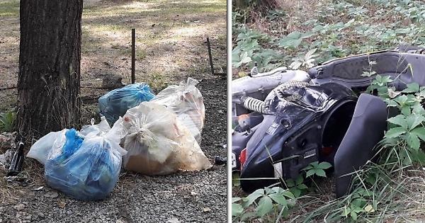 I sacchi rìdi rifiuti e lo scooter abbandonati lungo il Serio