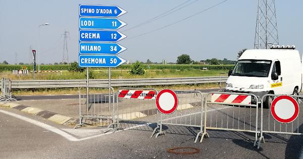 PANDINO/DOVERA (28 giugno 2019) - Un cedimento improvviso dell’asfalto, con una voragine larga quasi un metro e profonda almeno 150 centimetri che si è formata lungo la provinciale Bergamina, nel tratto tra Pandino e Dovera. E’ successo oggi pomeriggio intorno alle 16. Quasi immediata la chiusura della strada al traffico, per evitare rischi. Gli operai della Provincia hanno transennato sia l’uscita dalla rotatoria del Bertolino in direzione del cavalcavia della Paullese, sia l’ingresso sulla Bergamina per chi proviene dall’ex statale o da Dovera. Un tratto di circa 800 metri, la cui chiusura ha di fatto bloccato il collegamento diretto tra Pandino e la Paullese, oltre che quelli tra l’Alto cremasco e il Lodigiano e, di conseguenza, tra quest’ultimo territorio e la Bergamasca. Il traffico, comprese decine di mezzi pesanti, è stato deviato sulla viabilità secondaria con l’inevitabile formarsi di lunghe code.