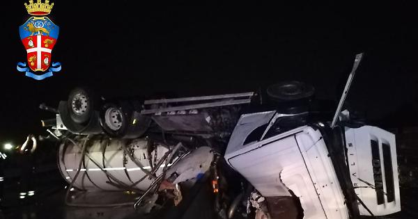 VAIANO CREMASCO (24 agosto 2019) - Incidente stradale poco dopo la mezzanotte, lungo la Paullese all’altezza del Mac Donald del Comune di Vaiano Cremasco. Il conducente di un camion per il trasporto latte di una ditta bresciana, a causa della foratura di un pneumatico, ha perso il controllo del mezzo pesante invadendo la corsia opposta di marcia, finendo contro il guardrail e cappottandosi. Il mezzo ha perso il contenuto della cisterna e gasolio dal serbatoio. Il conducente ha riportato fortunatamente lesioni lievi.