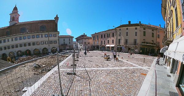 CREMA (9 settembre 2019) - Ormai ultimata per tre quarti la nuova pavimentazione in lastre di pietra e sanpietrini di piazza Garibaldi. Completata già in agosto l’area davanti alla chiesa parrocchiale di San Benedetto, nei giorni scorsi gli operai hanno terminato di lavorare nella porzione che confina con via Mazzini e si estende anche davanti a molti dei negozi, sul versante est dello slargo. Manca, in sostanza, solo l’area verso la statua. Sono circa 2.500 i metri quadrati di nuova pavimentazione, previsti dal progetto di pedonalizzazione di una larga fetta della piazza. Per fine ottobre, stando al cronoprogramma stabilito in sede di apertura del cantiere dal Comune, l’intera riqualificazione dovrebbe essere ultimata, compreso dunque l’arredo urbano.