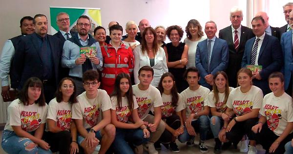 CREMA (22 settembre 2019) - «Chi salva una vita, salva il mondo intero». Si può riassumere in questa frase tratta dal Talmud, uno dei testi sacri dell’ebraismo, il progetto Heart attack-la scuola salvavita, ideato dal liceo Racchetti-Da Vinci. L’iniziativa, presentata ieri mattina in aula magna, prevede di collocare tre defibrillatori (Dae) nelle sedi della scuola e di formare al loro uso insegnanti, personale non docente, studenti ma anche i loro genitori. Racchetti-Da Vinci prima scuola in Lombardia a farlo.