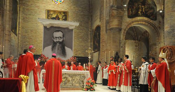 CREMA (19 ottobre 2019) - Padre Alfredo Cremonesi da oggi è beato. La proclamazione, in una cattedrale gremita e piena di fiori rossi, ad opera del cardinale Angelo Becciu (delegato pontificio) e, per prassi, su richiesta dei vescovi di Crema e Taungnugu Daniele Gianotti e Isaac Danu, davanti ai quali è stata letta la lettera con cui papa Francesco ha iscritto al numero dei beati il già venerabile di Dio Alfredo Cremonesi. Nativo di Ripalta Cremasca, nel 1925 parte per la Birmania, dove da subito si dedica agli altri: poveri, bisognosi, malati e anche semplicemente il popolo, fino a quando la rivolta per l’indipendenza porta a scontri violenti con le milizie governative. Le stesse che lo assassineranno, mentre prega, nel 1953. Il 7 febbraio, ora data che nel calendario indicherà anche la sua ricorrenza da beato.