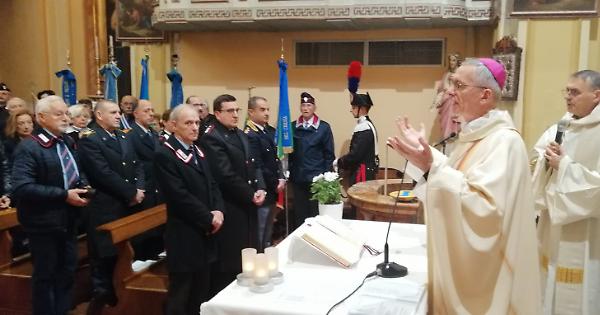 CREMA (21 novembre 2019) - Celebrazione della Virgo Fidelis, patrona dei carabinieri. In San Bartolomeo il vescovo Daniele Giannotti ha celebrato la messa, affiancato dal parroco don Michelangelo Nufi. Tra i presenti il vicequestore Daniel Segre, il capitano Giovanni Meritano, che comanda la Compagnia dei carabinieri di Crema, i comandanti di stazione, e i rappresentanti delle associazioni d'Arma. Per il Comune, il consigliere Pietro Mombelli.