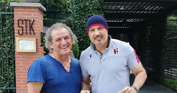 QUINTANO (22 luglio 2020) - La maglia de La Mitica, la nazionale italiana dei guariti dalla leucemia, per Sinisa Mihajlovic. Che è uno sportivo famoso nel mondo, ma è anche e soprattutto un uomo in lotta contro la malattia. La Mitica questo fa: stare vicino, per quanto è nelle sue possibilità a chi sta giocando la partita più importante della sua vita, siano essi bambini o adulti, vip o persone comuni. A donare la maglia all’allenatore del Bologna, sabato scorso, è stato Giacomo Terranova, di Quintano, capitano de La Mitica, che racconta come ha fatto a raggiungere il tecnico di origine serba. «Ci tenevo, da parecchio, ad incontrarlo, ma non perché fosse un personaggio famoso quanto per la sua condizione di ammalato. Grazie ad un amico giornalista ho contattato Marco Di Vaio (ex calciatore fra le altre di Parma, Juve e Bologna ed oggi dirigente della società felsinea) e tramite lui mi sono potuto recare all’hotel di piazza Della Repubblica a Milano dove il Bologna alloggiava in attesa della partita serale di campionato a San Siro contro il Milan». L’incontro fra Terranova, Sinisa e Marco Di Vaio è avvenuto nella hall dell’albergo.