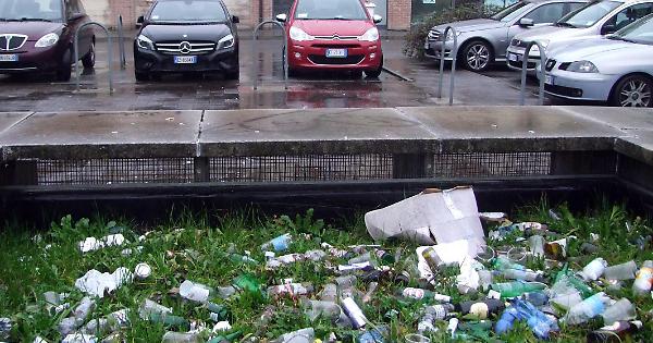 Più che aiuole, discariche. Spettacolo indecoroso quello che offre la Corte degli archi, la piazzetta lungo via IV Novembre sui cui si affacciano attività commerciali e locali notturni. Ed è proprio il 'popolo della notte' il principale indiziato: l'area, da anni uno dei principali ritrovi per i giovani, esce infatti 'malconcia' da ogni finesettimana. Le aiuole ricavate all'interno dei gradoni di cemento, utilizzati dai ragazzi per sedersi e socializzare, ospitano di tutto: bicchieri di plastica, bottiglie vuote, cartacce, pacchetti di sigarette. Rifiuti che a volte non vengono rimossi per giorni, come è capitato per esempio questa settimana: oggi la piazzetta è ancora sommersa dall'immondizia accumulata nelle notti di venerdì e sabato. Inevitabile il malcontento dei residenti, peraltro già stressati dall'immancabile chiasso che accompagna tutte le notti dei weekend.