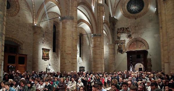 CREMA - Ieri sera i cremaschi hanno riabbracciato la ‘loro’ cattedrale, riempiendola all’inverosimile. Una lunga attesa (tre anni e mezzo) sottolineata anche dal vescovo Oscar Cantoni nella sua omelia. Alle 21 l’inizio della solenne liturgia; ma già alle 19, all’apertura del portone, i cremaschi hanno voluto vedere il ‘nuovo’ duomo: «Splendido e emozionante». Fedeli che, quando tutti i 150 corpi illuminanti sono stati accesi, sono rimasti per lunghi secondi con lo sguardo inchiodato verso l’alto, in segno di ammirazione. Una cattedrale «rinnovata» ha più volte ricordato il vescovo, sull’altare con tutti sacerdoti della diocesi. Solenne liturgia per la benedizione della ‘cattedra’ e dell’ambone dopo «lunghi anni di attesa soprattutto per chi si è impegnato in quest’opera. Frutto di coraggio e impegno. E’ tempo di gioia e di festa. La cattedrale è la casa di tutti». E i cremaschi hanno risposto all’invito.