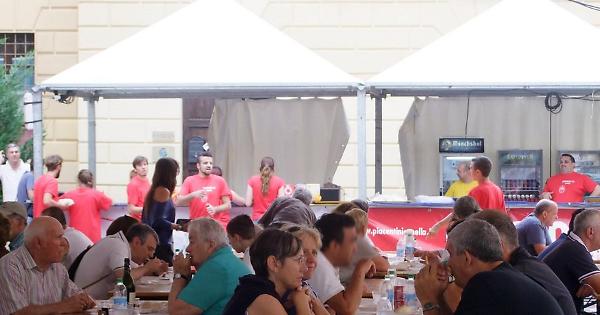 CREMA - Partenza gustosa per la seconda edizione di Tortelli&Tortelli, che giovedì 14 agosto ha cominciato a cucinare delizie nel ristorante a cielo aperto di piazza Moro. Subito numerosi i cremaschi che ne hanno approfittato, concentrando le loro attenzioni naturalmente sul tortello dolce. Comunque vario il menù messo a punto dalle Tavole Cremasche: la carta comprende anche lasagne e foiolo come primi piatti; roastbeef, caprese e cotoletta come secondi piatti; salva con le tighe, formaggi misti, salame cremasco e salumi con frittata tra le portate tipiche; spongarda, pesche al vino rosso, ‘mattonella del Duomo’ e altre torte come dessert. Tortelli&Tortelli proseguirà fino a lunedì compreso, sia a mezzogiorno che in serata.