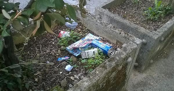 Rifiuti abbandonati nelle fioriere a Crema