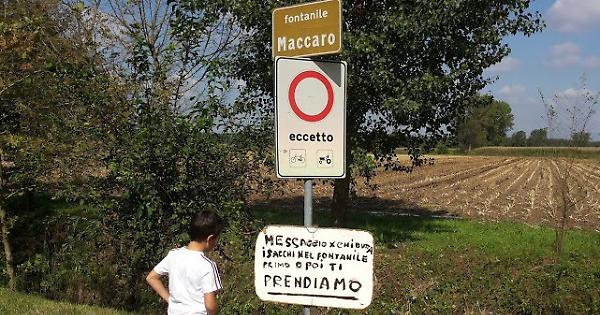 FARINATE (Capralba) - «Messaggio per chi butta i sacchi nel fontanile. Prima o poi ti prendiamo». Recita così un cartello comparso nei giorni scorsi al fontanile Maccaro, a Farinate (frazione di Capralba), scritto a mano da qualcuno che ha particolarmente a cuore il territorio locale e che è stanco di vedere gettati in questo corso d’acqua sacchi di spazzatura contenenti di tutto. In effetti succede da qualche settimana, di continuo, che sconosciuti scambino il fontanile per una discarica e l'ultima volta è accaduto sabato 6 settembre.