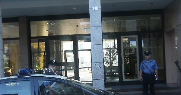 I carabinieri davanti all'ingresso dell'Ospedale Caimi di Vailate