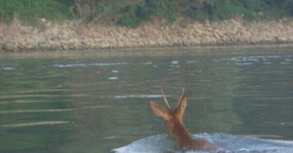Il capriolo che nuota nel Po fotografato da Franco Fiammenghi