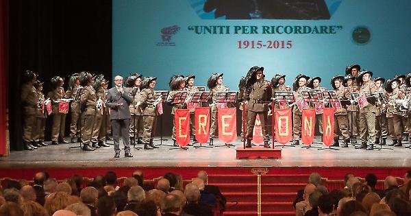 CREMONA - Ponchielli tricolore, sabato 21 marzo, con la bandiera sul palco e piume di bersaglieri e penne di alpini in platea. Teatro gremito per il concerto in memoria del centenario della grande guerra, con un titolo più che azzeccato ‘Uniti per ricordare’, naturalmente a suon di musica con due formidabili gruppi, strumentale e vocale: la Fanfara Provinciale dei Bersaglieri Pietro Triboldi, diretta magistralmente dal maestro Marco Nolli ed il Coro Ana della sezione alpini di Cremona, guidato con passione dal maestro Carlo Fracassi che al termine, quando l’entusiasmo era alle stelle, hanno cantato l’Inno d’Italia. Concerto per rendere omaggio alle centinaia di migliaia di cittadini obbedienti, scomparsi in quella tragedia, che, come hanno detto Giuseppe Morelli, presidente provinciale del bersaglieri, Mario Schiroli, presidente della sezione cremonese e Carlo Fracassi, presidente degli alpini, chiedono solo di ‘non essere dimenticati’. E sono giovani che hanno lasciato, sul campo, vita e futuro, le cui crude immagini scorrevano sul palco. Presentazione di Silvio Beccaria e via alla musica, con il ‘Flik Flok’ dei bersaglieri, seguito da una fantastica carrellata di motivi celebri. Il Coro Ana ha riposto, con ‘Va l’Alpin’ e via ‘Notte che pioveva’, monti Pasubio, Cauriol, Canino. Serata riuscita, in platea anche il prefetto Paola Picciafuochi. Grazie alla sponsorizzazione di Aldo Vanoli, al quale i tre presidenti hanno consegnato una targa con scritto, in grande, ‘grazie’. Raccolte offerte per ‘operazione sorriso’, sostenuta dalle associazioni d’arma, per aiutare le famiglie in difficoltà di Borgo Loreto.