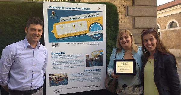 CREMONA - “Con l’obiettivo di riqualificare e conferire vitalità e animazione urbana ad un asse importante della città storica il Comune ha dato luogo, nell’estate 2014, ad una esperienza assai significativa di uso temporaneo, qualificante e attraente, degli spazi pubblici urbani”. Con questa motivazione il Consiglio Nazionale degli Architetti Pianificatori Paesaggisti e Conservatori, dall'Istituto Nazionale di Urbanistica, dall'Ordine degli Architetti Pianificatori Paesaggisti e Conservatori di Roma e Provincia e dalla sezione del Lazio dell'Istituto Nazionale di Urbanistica ha assegnato al Comune di Cremona il Premio Biennale Spazio Pubblico 2015 (BISP) - Viaggio nei Comuni delle buone pratiche (sezione La strada) per il progetto di rigenerazione urbana “C’è un fiume in corso Garibaldi”. Hanno ritirato il premio nella sede della Biennale a Roma (Dipartimento di Architettura di Roma Tre) l’Assessore alla Città vivibile e Rigenerazione urbana Barbara Manfredini, l’architetto del Comune di Cremona Riccardo Zelioli e l’architetto Paola Ceriali di Qun (New Urban Question), studio che ha donato l’idea alla città.