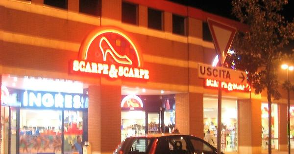 Una macchina dei carabinieri davanti a Scarpe&Scarpe