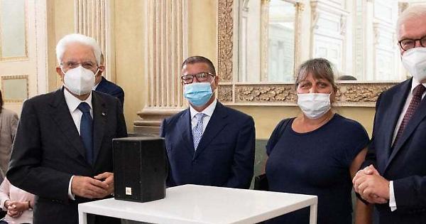 Il Presidente della Repubblica, Sergio Mattarella con Antonio Coluccello, il Presidente della Repubblica federale tedesca, Frank-Walter Steinmeier, e Krstevska Grozdana, 54enne curata da Coluccello