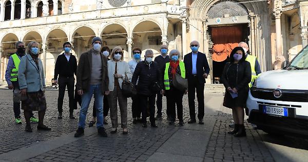 CREMONA (3 aprile 2021) - L’Auser di Cremona — realtà ormai storica sempre molto attiva nel mondo del volontariato cremonese — ha vissuto un momento importante, nella bellissima cornice di piazza del Comune. L’occasione è stata la presentazione della nuova macchina attrezzata appena acquistata, grazie a generose donazioni. «Ringraziamo la famiglia Bernuzzi e la signora Beatrice Strevignoli — dicono la presidente Manuela Cavedagna e il vice presidente Giuseppe Taino — che con la loro generosità hanno voluto ricordare due congiunti recentemente scomparsi. Erano presenti anche una rappresentanza della associazione Abio e per la ditta Lameri il signor Carotti, che hanno contribuito all’acquisto del mezzo. Un grazie anche al presidente Cesare Macconi della Fondazione Comunitaria per l’attenzione che ha avuto nei nostri confronti».