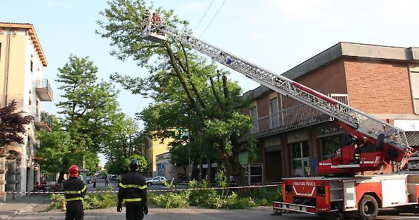 CREMONA - Intervento dei vigili del Fuoco nel quartiere Sant'Amberogio di Cremona nel tardo pomeriggio di mercoledì 7 maggio 2014. Il motivo è un albero pericolante.