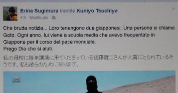 Shock e paura per la sorte nipponici che tocca anche Cremona.Martedì 20 gennaio, a metà pomeriggio, è apparso un post sulla pagina Facebook di Erina Sugimura, una studentessa giunta sotto il Torrazzo dal Paese del Sol Levante per studiare alla scuola di liuteria. La studentessa ha postato la fotografia dei due ostaggi vestiti nell’ormai tradizionale divisa arancione e al fianco del presunto boia di origine inglese. La 23enne sotto la fotografia scrive la sua sofferenza e il suo dolore per i due connazionali in pericolo di vita, amplificato dal fatto che la ragazza conosce bene uno dei due ostaggi. ‘Che brutta notizia... Loro tengono due giapponesi. Una persona si chiama Goto. Ogni anno, lui viene a scuola media che avevo frequentato in Giappone per il corso del pace mondiale’.