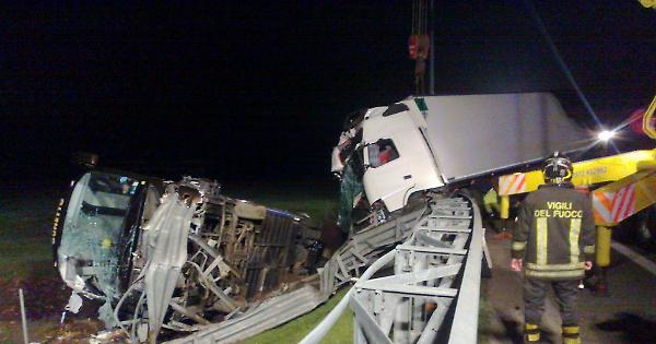 CORTE DE’ FRATI - Sono gravi le condizioni di un ragazzo di 19 anni - ricoverato a Cremona in prognosi riservata le cui condizioni si sono stabilizzate dopo una notte di osservazione - e dell'autista che avrebbe dovuto dare il cambio al conducente del pullman carico di studenti che, nella serata di venerdì 27 febbraio, si è scontrato con un camion finendo in una scarpata nel territorio comunale di Corte de’ Frati. L'uomo ha subito lesioni permanenti ad un arto inferiore.