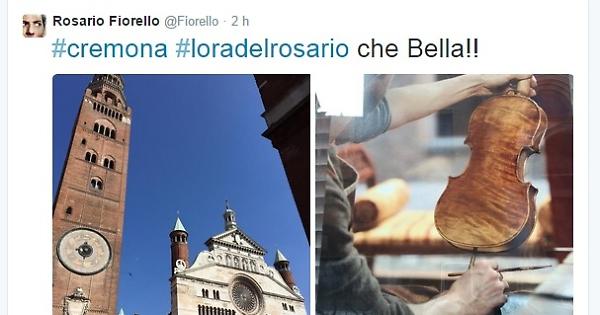 CREMONA - Fiorello è arrivato a Cremona - sabato 28 e domenica 29 sarà sul palco del Ponchielli con lo spettacolo L'ora del rosario - e ha twittato le immagini [GUARDA]della nostra città, dimostrando di apprezzare le bellezze artistiche e le prelibatezze gastronomiche cremonesi.