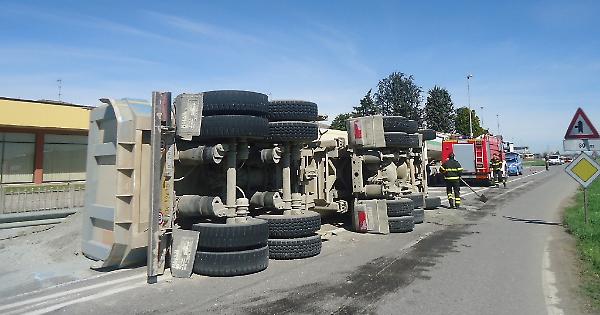 FORMIGARA - Si ribalta in uscita dalla rotonda e rovescia quintali di sabbia lungo la provinciale: autista in ospedale (il 53enne non è grave) e disagi al traffico per oltre due ore. L’incidente si è verificato poco dopo le 14 di lunedì 30 marzo alle porte di Formigara. Un camion che viaggiava a pieno carico ha affrontato il rondò in direzione San Bassano e, per cause in corso d’accertamento, al termine della fase di svolta si è inclinato su un fianco, adagiandosi in mezzo alla strada. Per fortuna non ha travolto nessuno. Fino alle 16.30 lungo la provinciale Formigara-San Bassano il traffico è stato regolato con un senso unico alternato.
