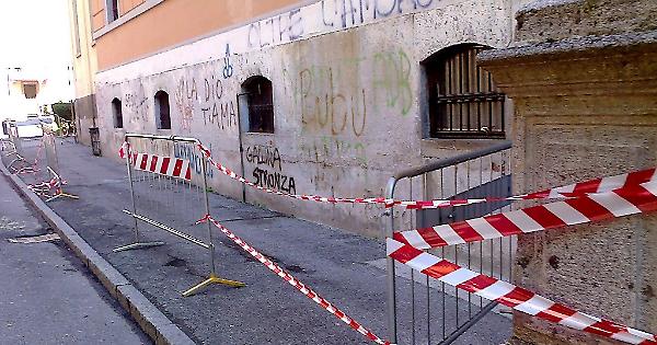 CREMONA - Crolla l’intonaco alla media ‘Vida’ di via San Lorenzo, a due passi da corso XX Settembre. Un altro edificio scolastico della città che perde pezzi. E’ avvenuto la mattina di Pasqua. Per fortuna, ad aule chiuse. Dopo la segnalazione di un addetto dell’adiacente Museo Archeologico di San Lorenzo, l’intervento di vigili del fuoco e polizia locale ha palesato una situazione di emergenza. L’edificio è stato transennato per tutta la sua lunghezza, a monte e a valle del portone e delle scalinate, anche quelle piene di calcinacci. Le parti della facciata prive di intonaco sono quasi un terzo del totale. Se i frammenti di intonaco avessero colpito qualcuno, se il crollo fosse avvenuto dopo la ripresa delle lezioni, il quadro sarebbe stato ben peggiore.