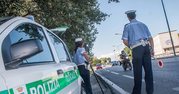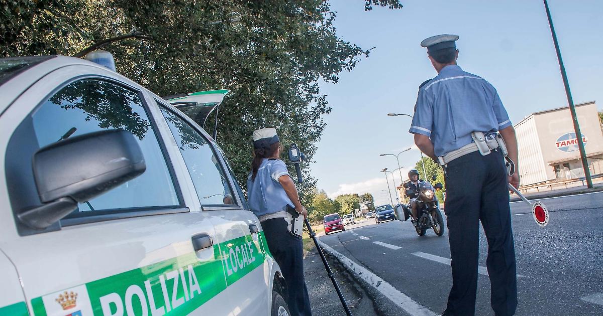 Agenti della polizia locale con il Telelaser in tangenziale